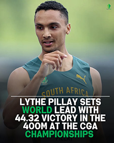 | A world-leading 400 m performance in Johannesburg saw Lythe Pillay surge to victory, continuing South Africa’s strong run in athletics. |